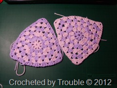 I have been playing with the 4mm crochet hook a little bit more. I showed you 3 bunting triangles in an earlier post but I have done a little bit of practicing with what to do with them when done. Some people have added them to string but in my Art of Crochet magazines it shows you how to join with crochet and this is what I have tried.